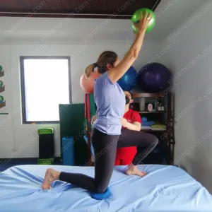 El fisioterapeuta guía mediante actividades que potencien una función para su vida diaria, mejorando el equilibrio y coordinación motora, por medio de activaciones manuales y ejercicios que nos permiten activar los segmentos encargados de la estabilidad de tronco profundos, piso pélvico, activación del pie mejorando el apoyo del mismo cuando estamos de pie y mientras realizamos la deambulación.